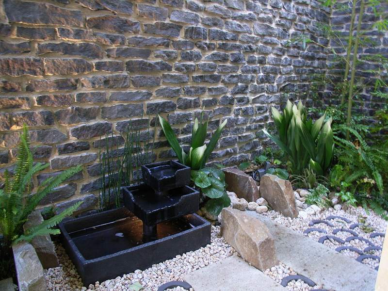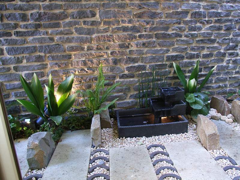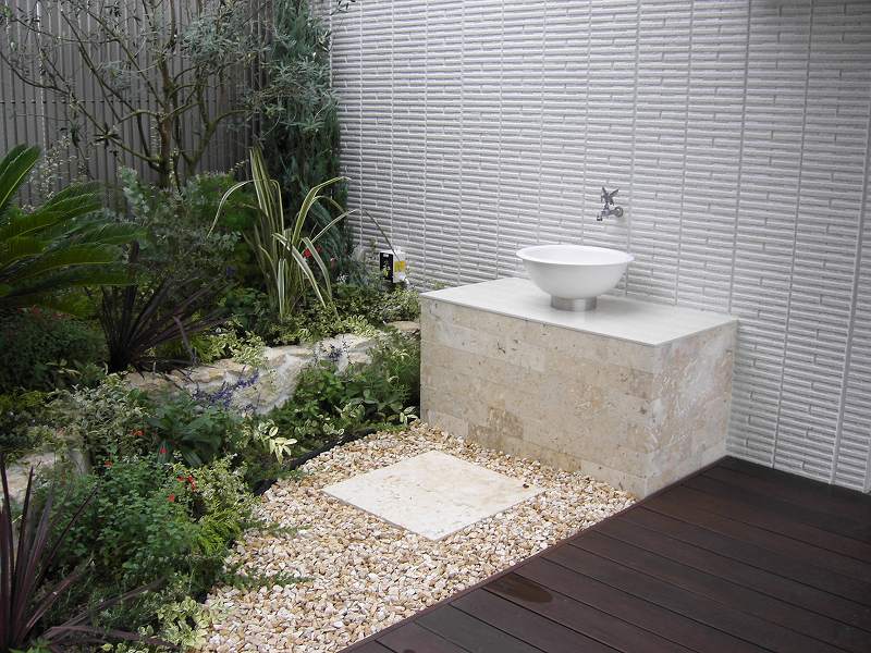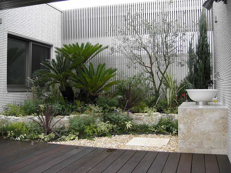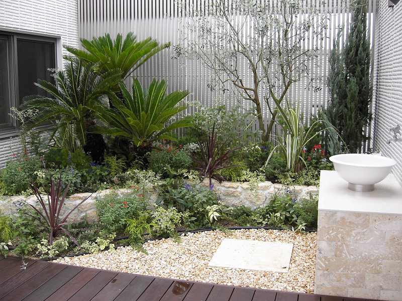 石張花壇、水場、植栽(ソテツ他)